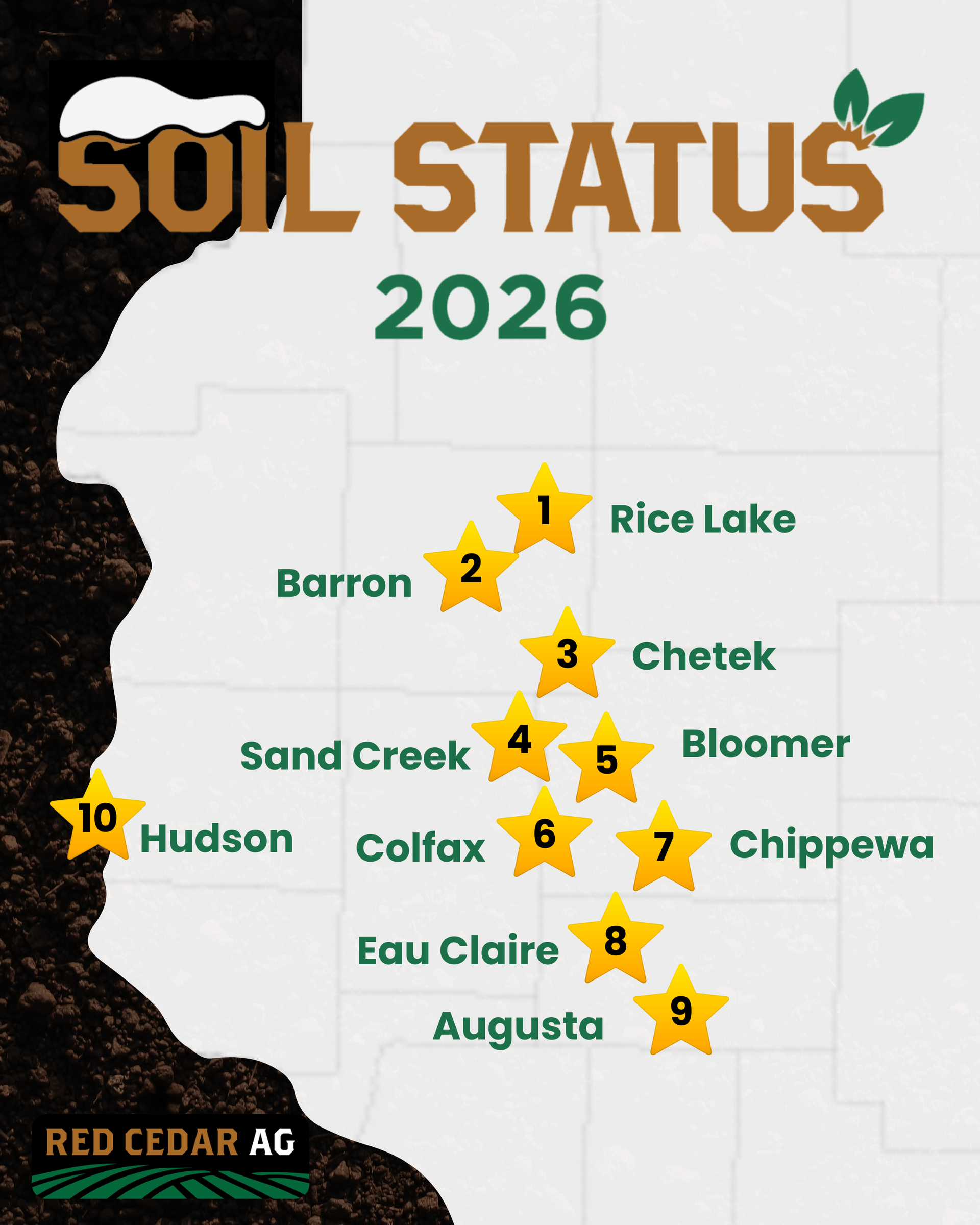 New updates drop each Friday as we continue tracking soil conditions across the area. Join the Red Cedar Ag community to stay up to date on Soil Status updates, local events, promotions, and more.